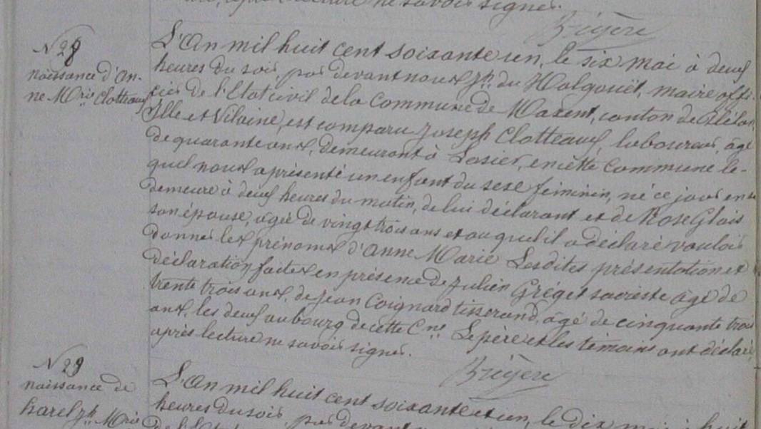 Témoins :CLOTEAULT Pierre Marie ( 1835 - 1901 )