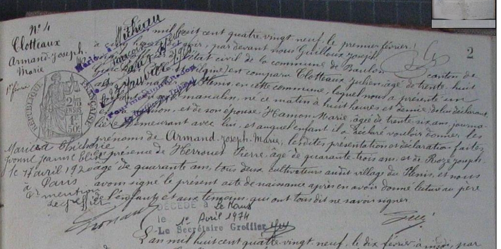 Père : CLOTEAUX Julien Marie Constant ( 1850 - 1916 )