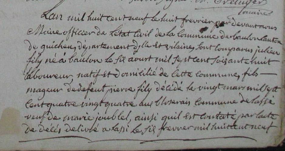 Mariage : 8 février 1809 à Baulon 35580