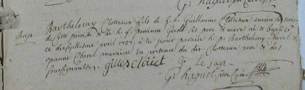 Père : CLOTTEAUX Guillaume ( 1686 - > 1735 )