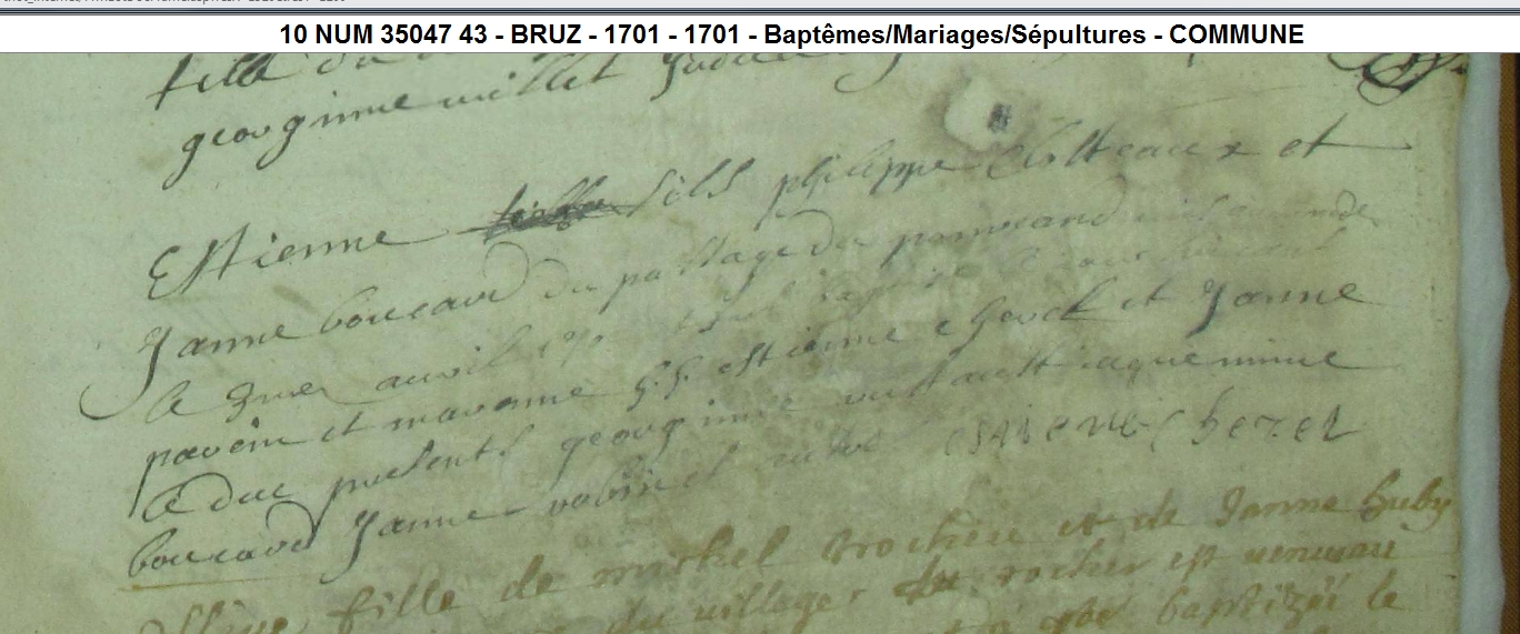 Naissance : calculée 1695 à Guignen 35580 Décès : 11 octobre 1701 à Guignen 35580