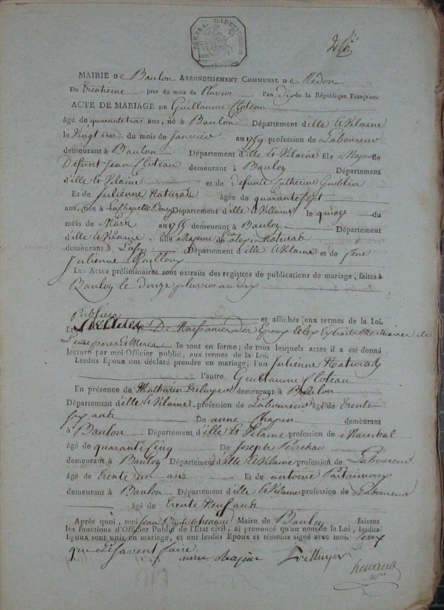 CLOTTAUX ou CLOTEAU sur actes de mariage ou CLOTEAUXDécès : 24 mai 1831 à Baulon 35580