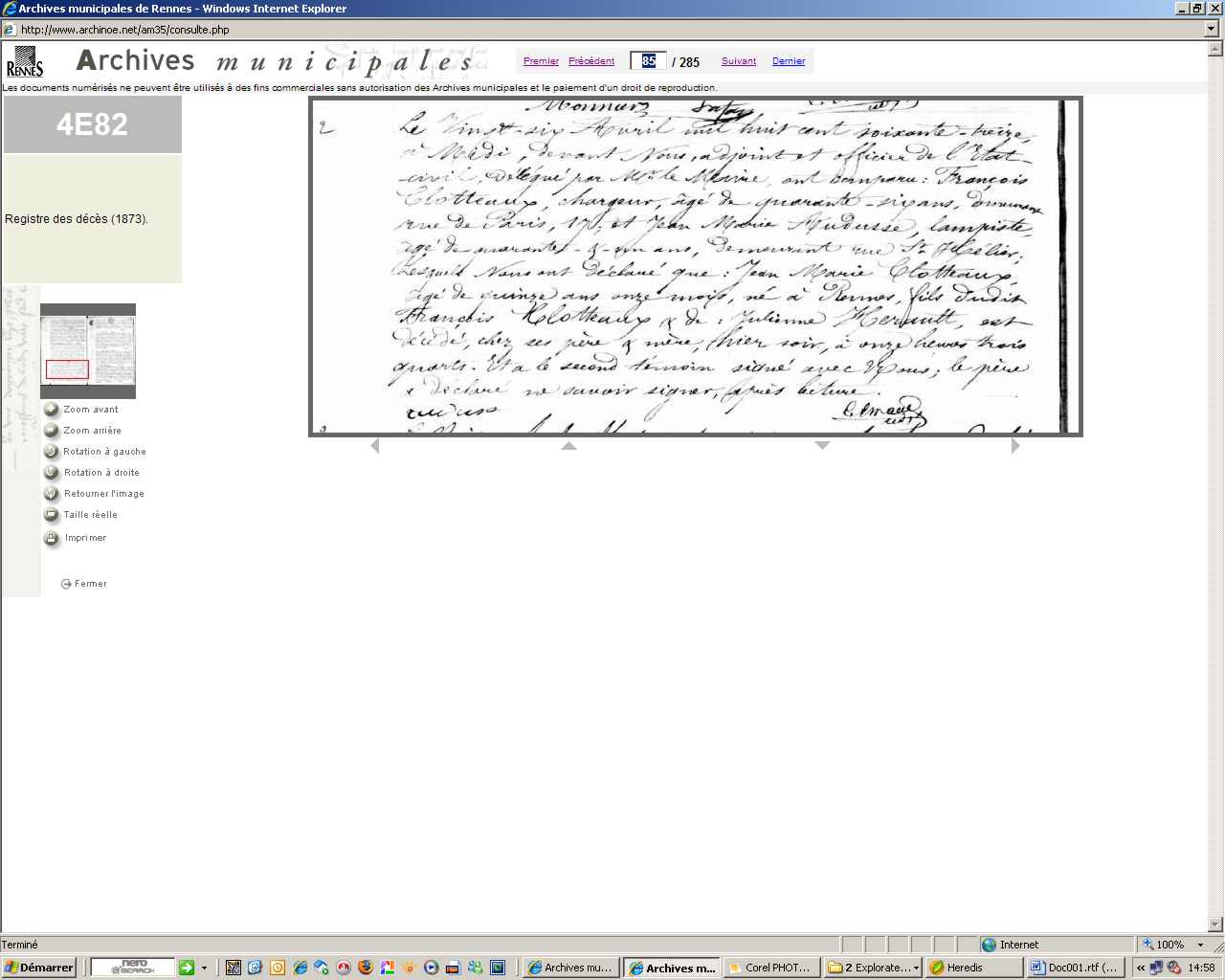 Décès : 25 avril 1873 à Rennes 35000 17 Rue de Paris