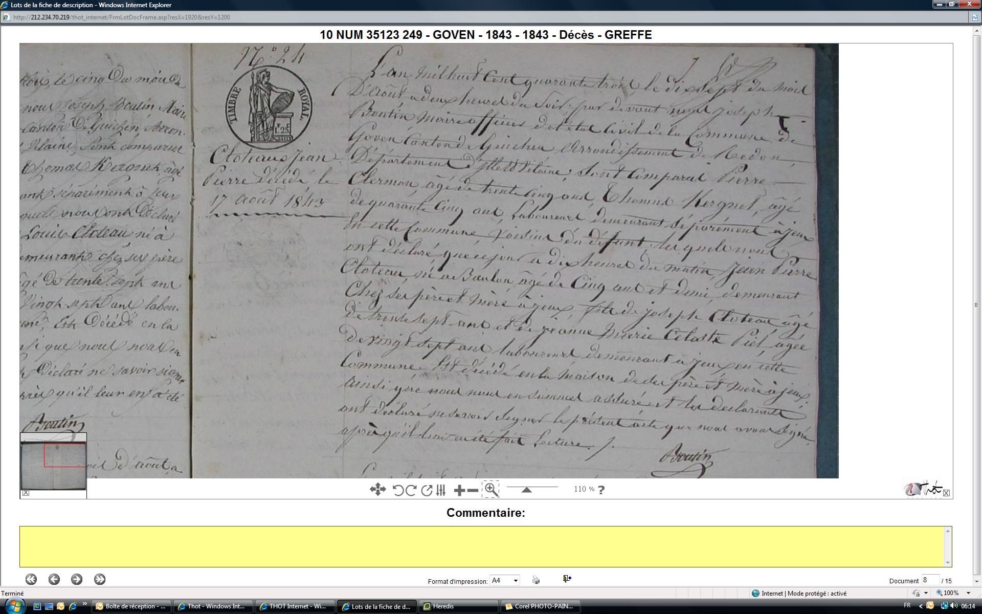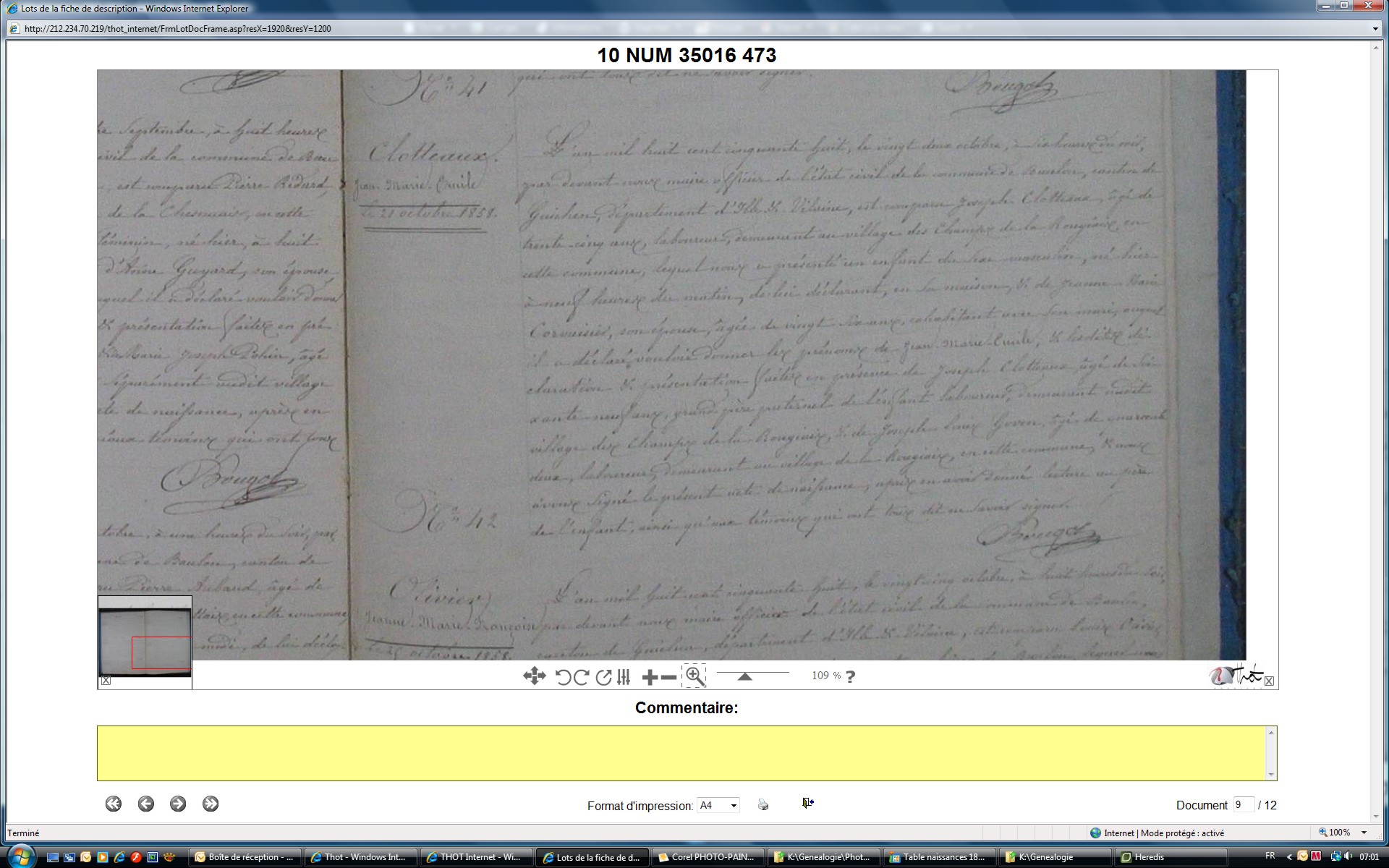 temoin mariage: Jean-Marie CLOTTEAUX (1808-), lien: Other , titre: Autre -