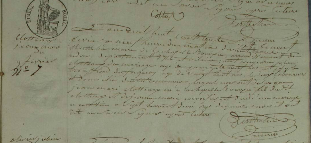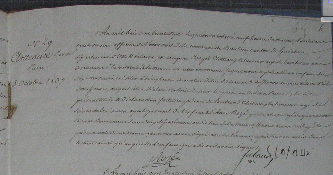 1835 : Témoin au mariage de Pierre ROPERT 1809-1875/ et de Perrine CORVOISIER 1815-1846 Marié le 28 juillet 1835, Maure-de-Bretagne,35330,Ille-et-Vilaine,Bretagne,FRANCE, avec Perrine CORVOISIER 1815-1846(témoins : Julien JUHEL 1803-1871/ , Guillaume CORVOISIER 1813-1860 , Jean-Marie CLOTTEAUX ca 1808-1835/ , Pierre Marie CORVOISIER 1810-1877 , Jean ROPERT 1772/1776-1836/ ) (