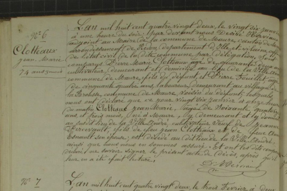 Décès : 26 janvier 1882 à Maure-De-Bretagne 35330