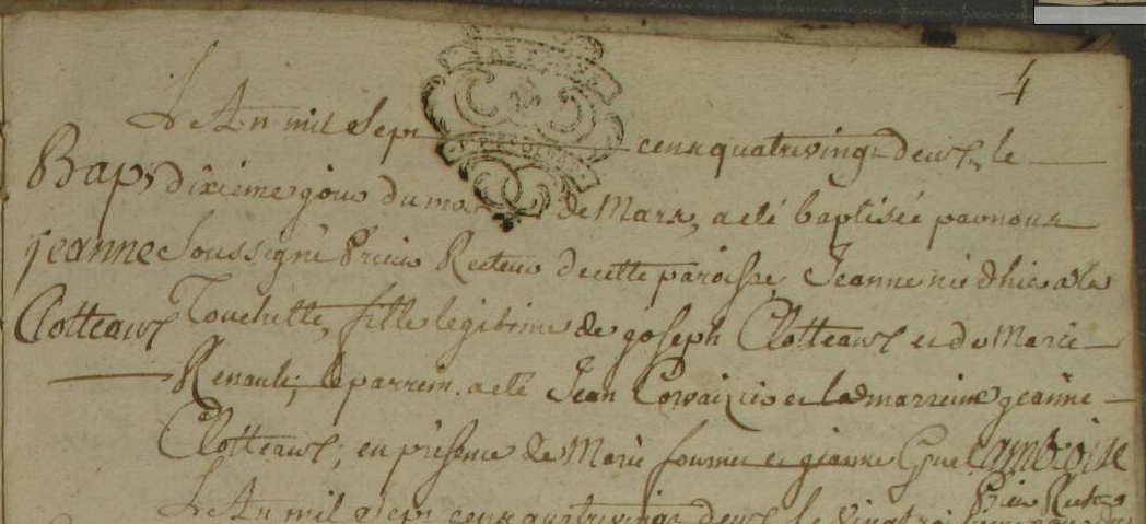 Témoins :CLOTEAUX Perrine ( ~ 1700 - 1778 )