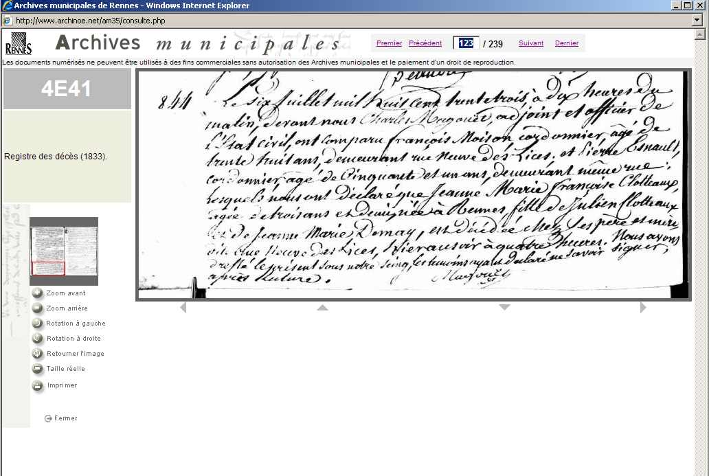 Décès : 6 juillet 1833 à Rennes 35000 Rue Neuve des Lices