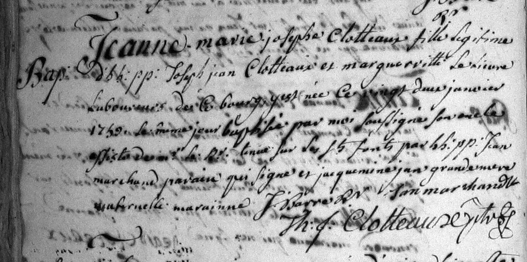Enfants : CLOTEAU Jeanne ( <> 1704 & 1725 - > 1748 )
