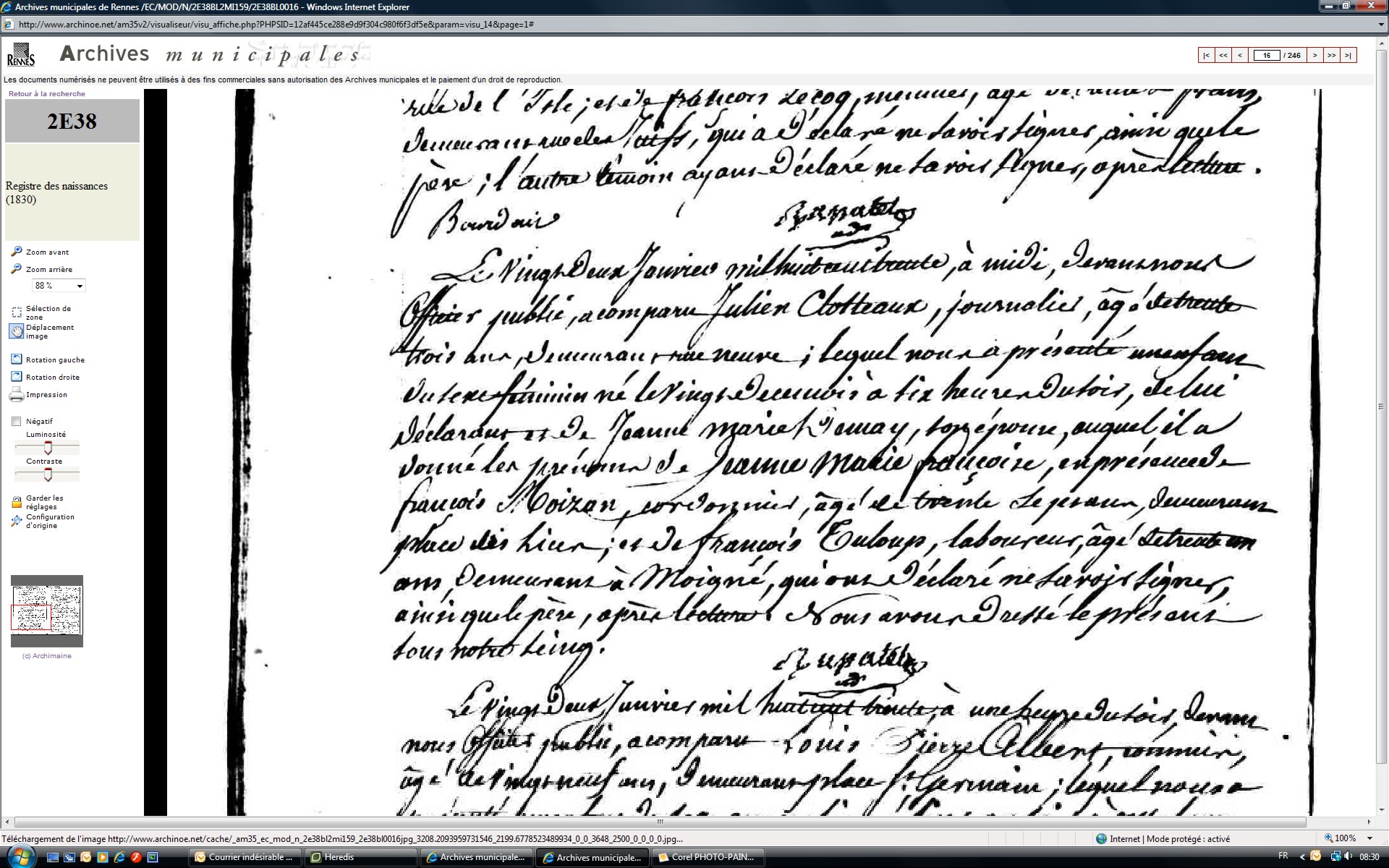 Naissance : 20 janvier 1830 à Rennes 35000 Rue Neuve
