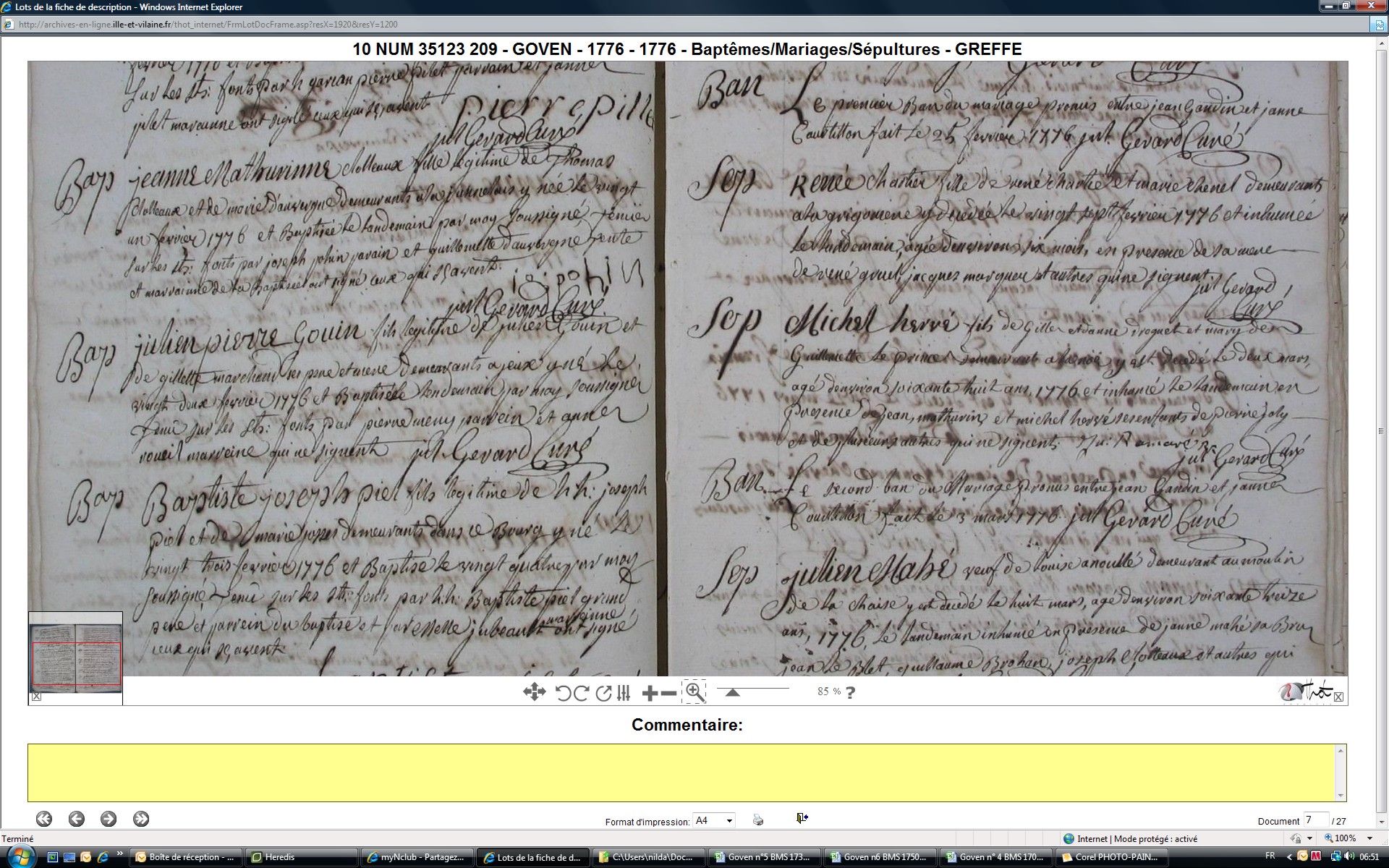 Naissance : 7 octobre 1775 à Goven 35580 Bourg Décès : 1er novembre 1775 à Goven 35580 Bourg