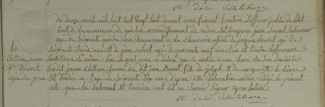 Décès : 12 avril 1828 à Guichen 35580 La chouainaie
