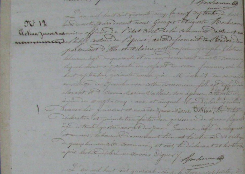 ou CLOTEAUX ou CLOTIAUDomicile : 1705 à Guignen 35580 Bourg Domicile : entre 1713 et 1720 à Guignen 35580 Goulochère Décès : entre 1725 et 1748