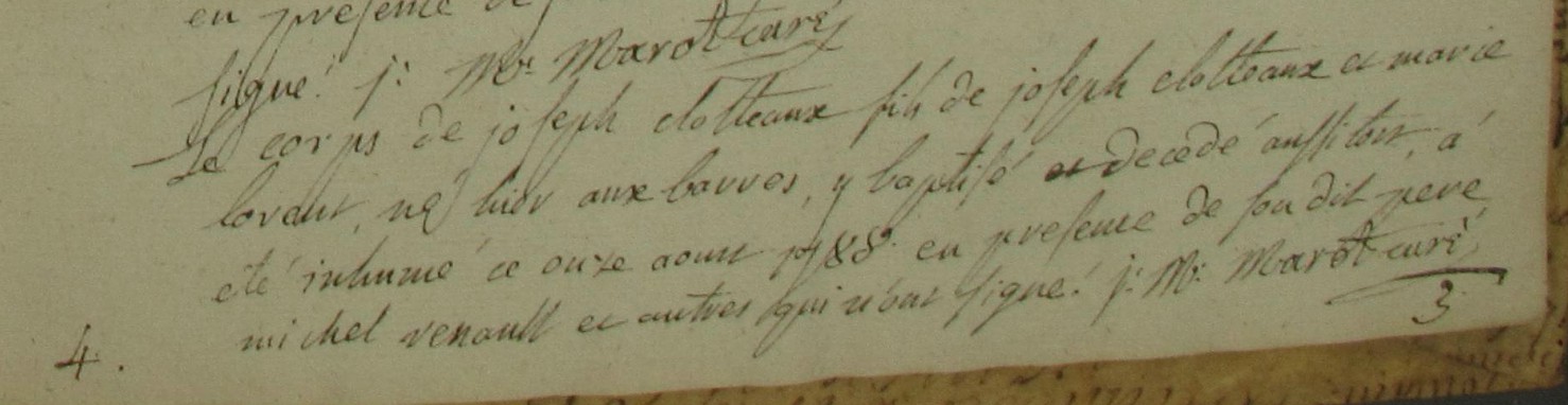 Témoins :CLOTTEAUX Jacques ( < 1754 - > 1789 )