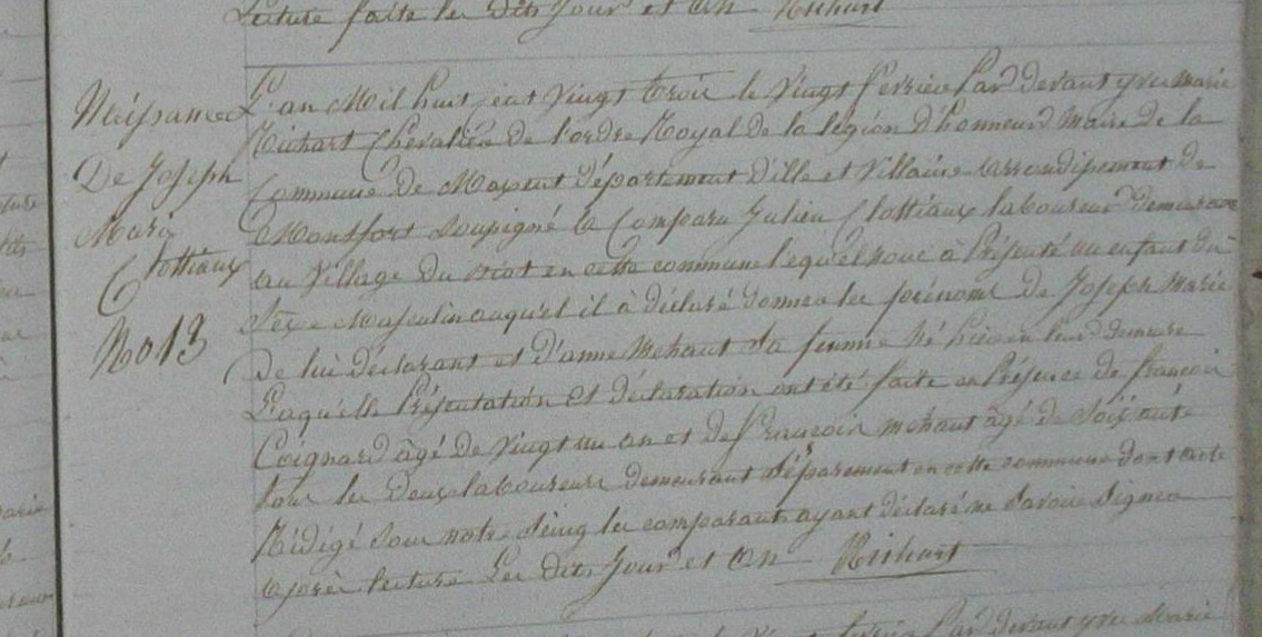 Père : CLOTTEAUX Jean Joseph Marie ( 1761 - 1834 )