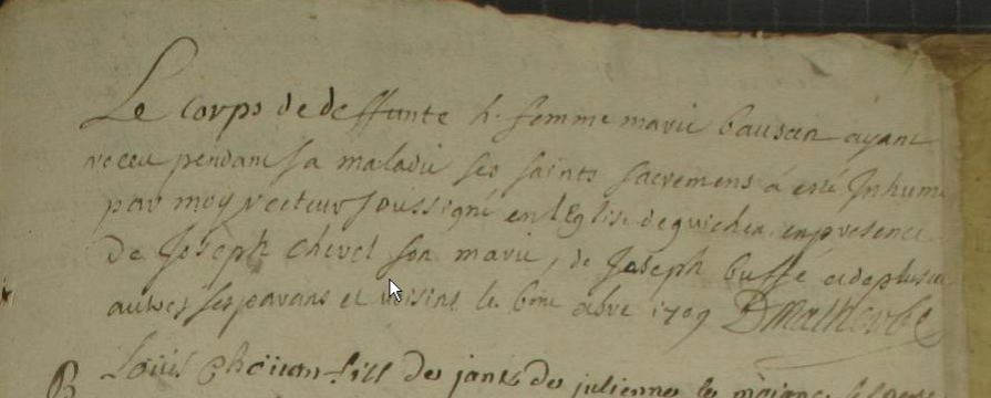 Baptême : avant 1690 Inhumation : 6 décembre 1709 à Guichen 35580 Eglise