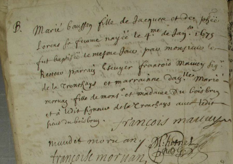 Témoins :MAUNY François ( 1643 - > 1678 )