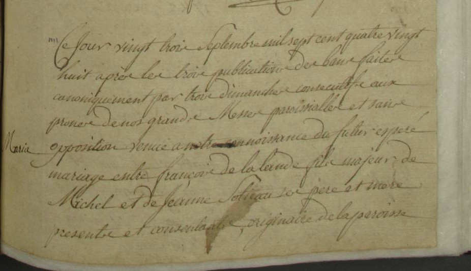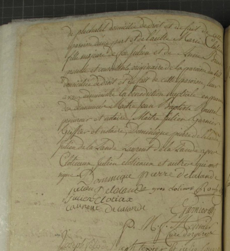 12 mariages CLOTIAUX Marie x DELALANDE François 1788 à Orgères !!!