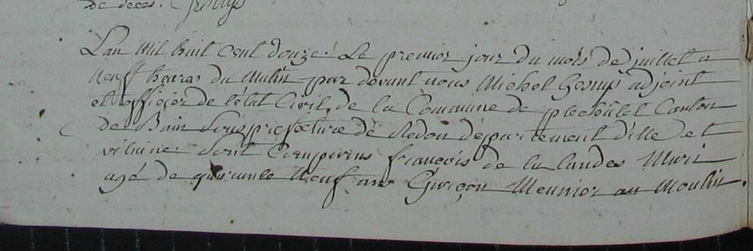 Naissance : vers 1771 à Guignen 35580 La Goulochère Domicile : entre 1793 et 1800 à Guignen 35580 Vallée Domicile : Décès : avant 1832