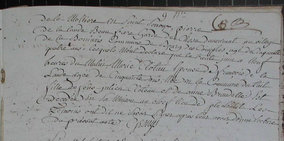 Naissance : vers 9 mars 1769 Décès : 12 mars 1769 à Maure-De-Bretagne 35330 Géraudais