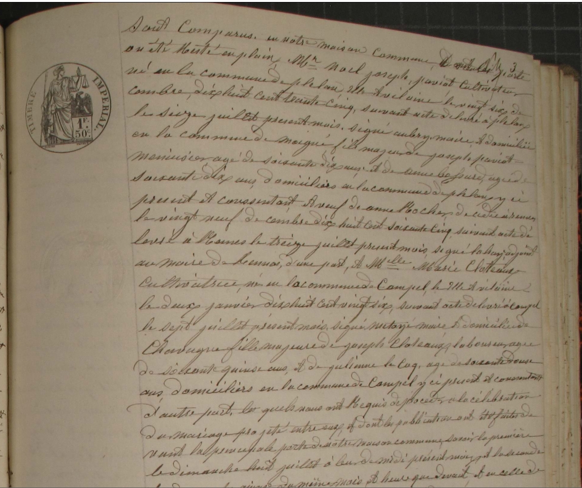 Naissance : 2 janvier 1826 à Campel 35330