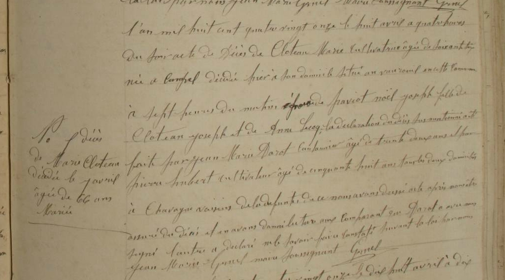 Décès : 5 avril 1777 à Goven 35580 Jouannelais