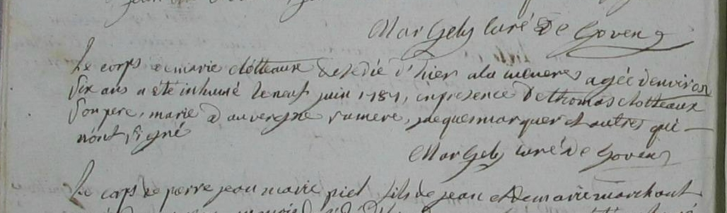 Naissance : vers 1781 à Goven 35580 Jeunelais Inhumation : 9 juin 1787 à Goven 35580 Cucuère