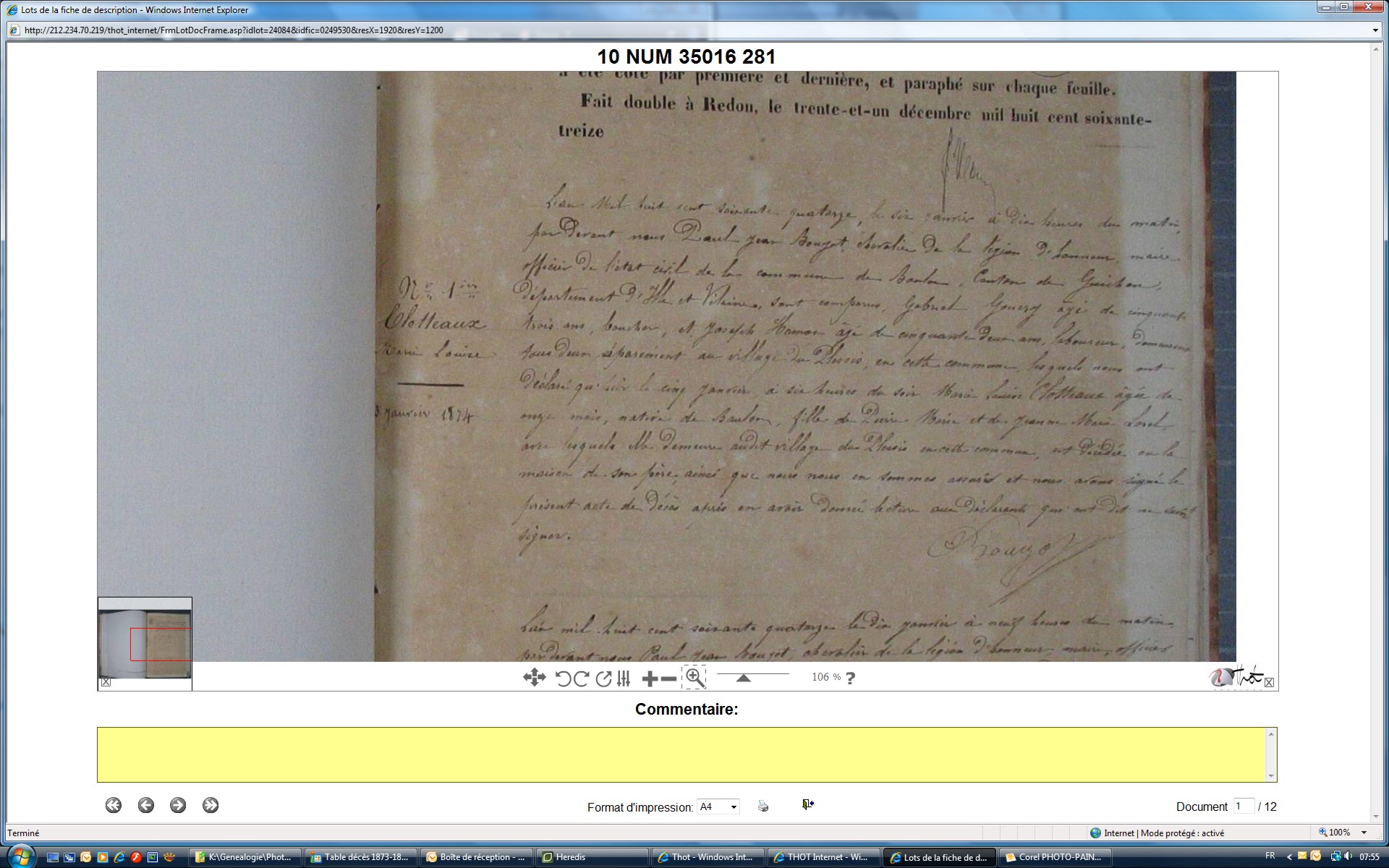Décès : 6 janvier 1874 à Baulon 35580 Plessis