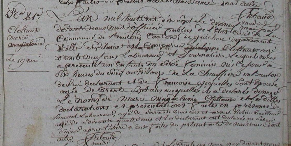 Père : CLOTTEAU Jean René ( 1819 - 1855 )
