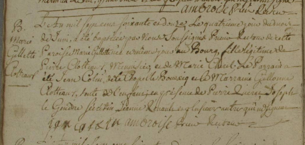 Père : CLOTEAUX François ( < 1698 - > 1717 )