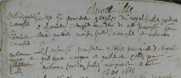 Mariage : 30 avril 1665 à Noyal-Sous-Bazouges 35560
