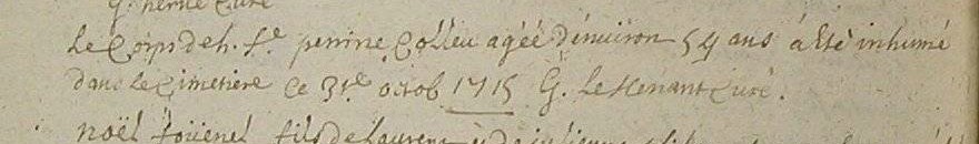 Naissance : calculée 1661 Inhumation : 31 octobre 1715 à Bazouges-La-Pérouse 35560