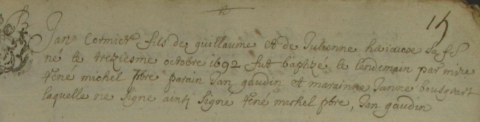 Mère : HERIAUT Julienne ( 1653 - > 1692 )