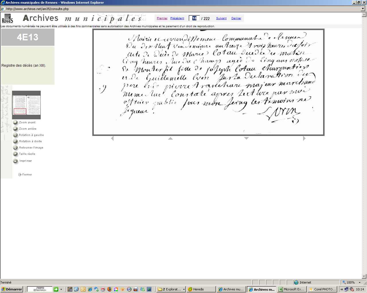 Décès : 19 vendémiaire an XIII à Rennes 35000