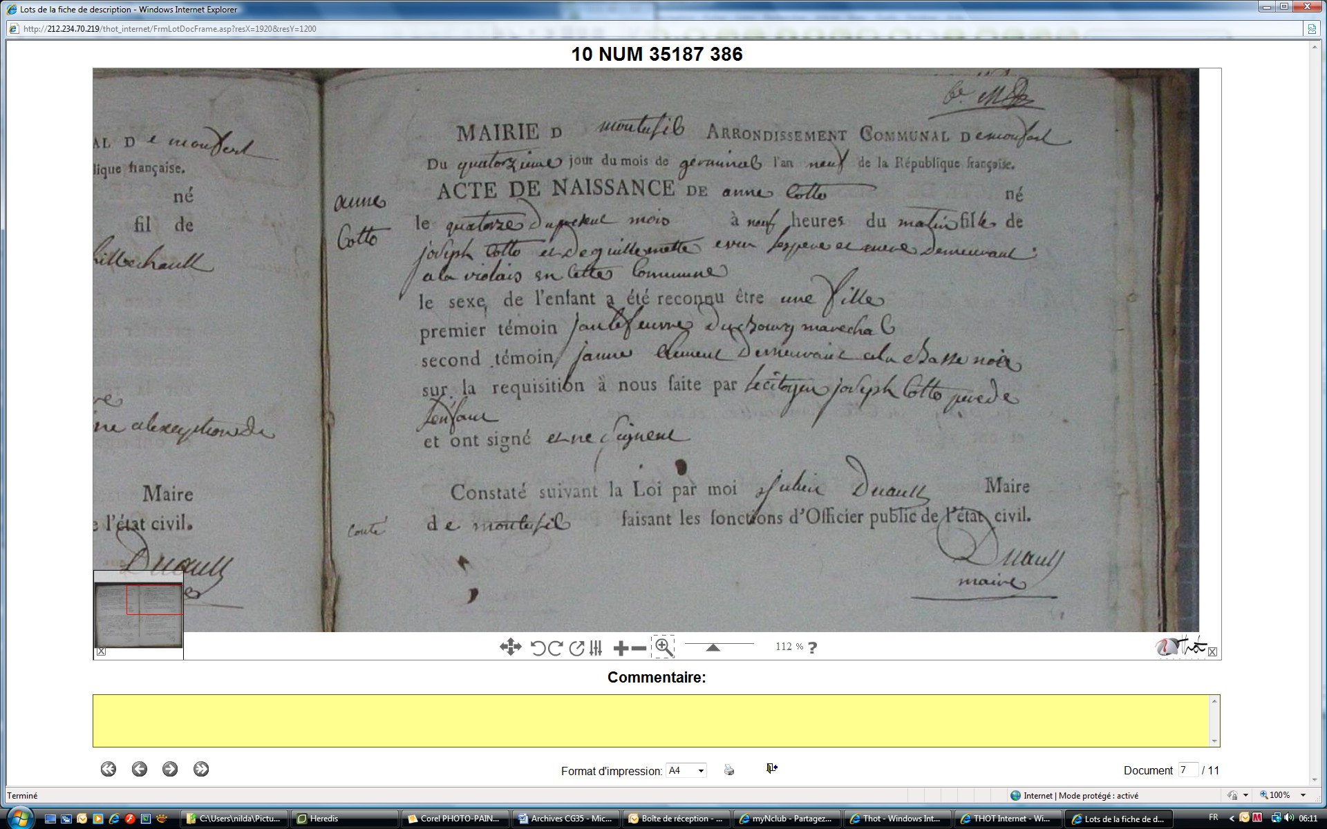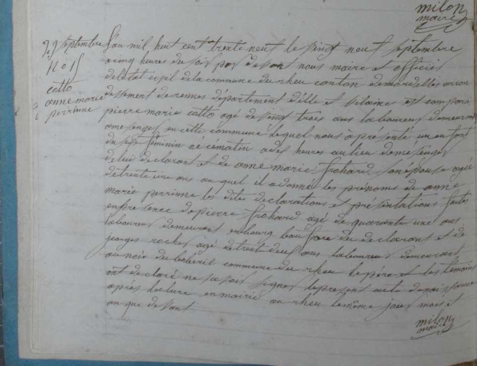 Naissance : 14 germinal an IX à Monterfil 35160