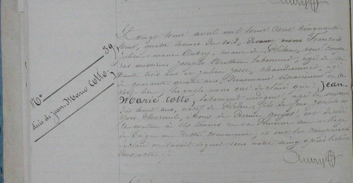 Naissance : calculée 1800 Décès : 3 avril 1858 à Plélan-Le-Grand 35380