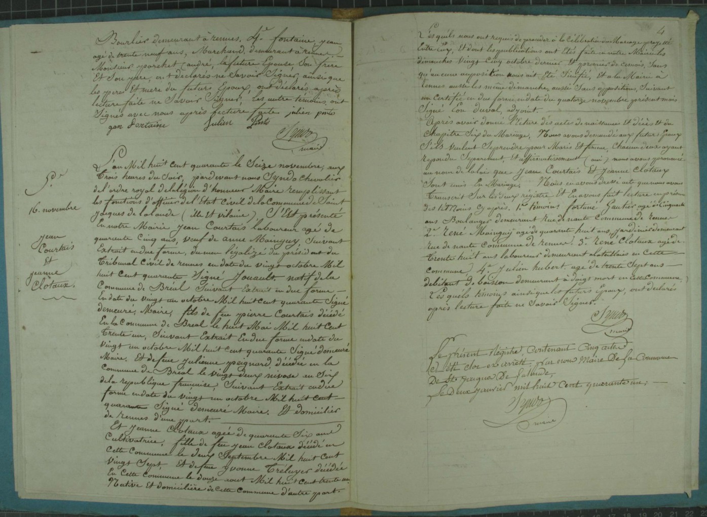 Mariage : 16 novembre 1840 à Saint-Jacques-De-La-Lande 35136