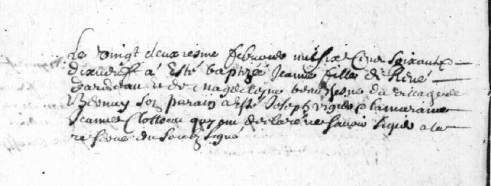 Mère : BEAUCHESNE Magdelaine ( < 1664 - > 1679 )