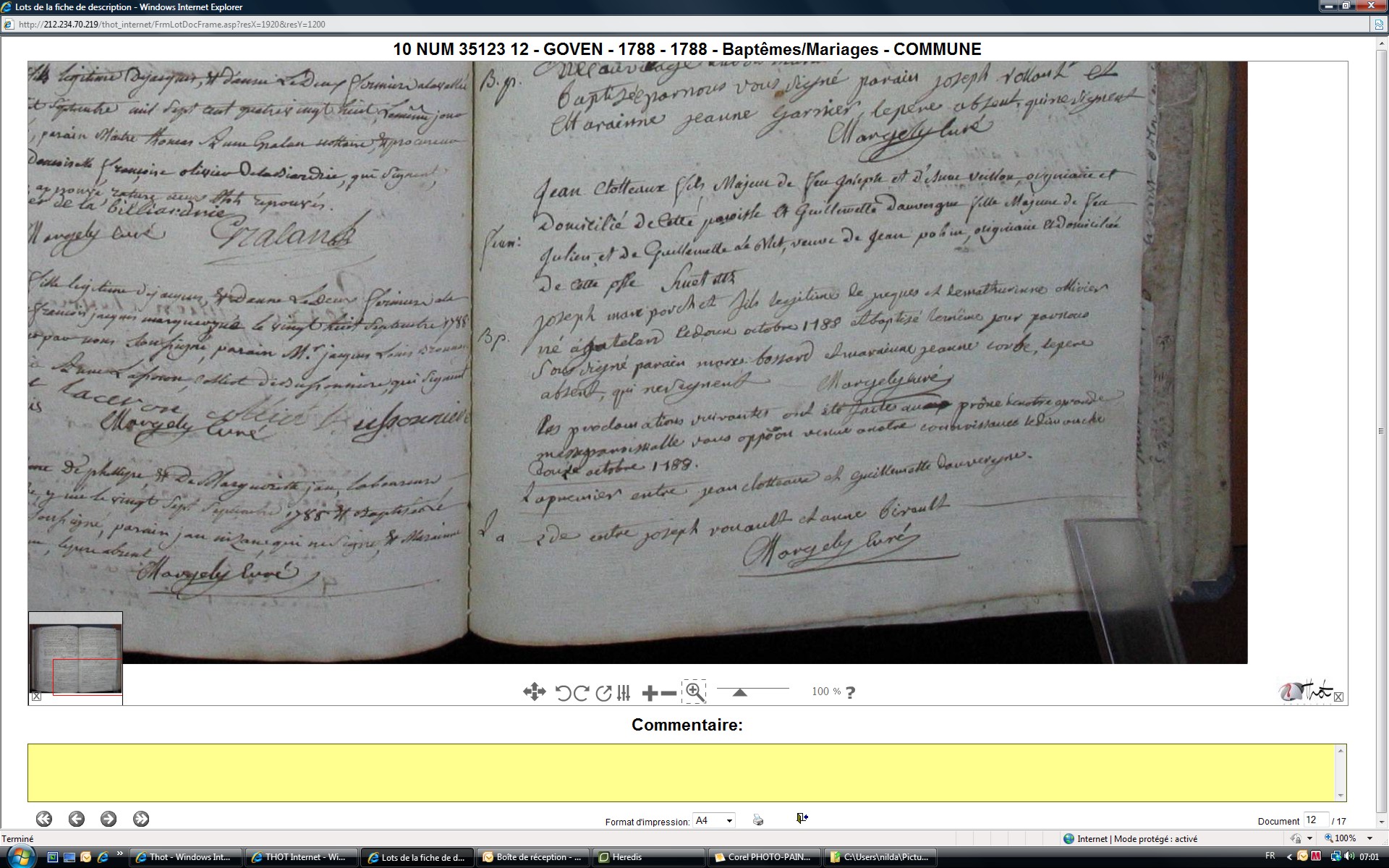Fiançailles : 12 octobre 1788 à Goven 35580