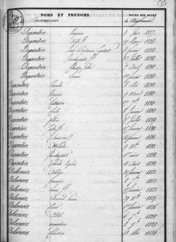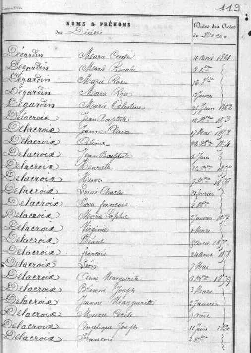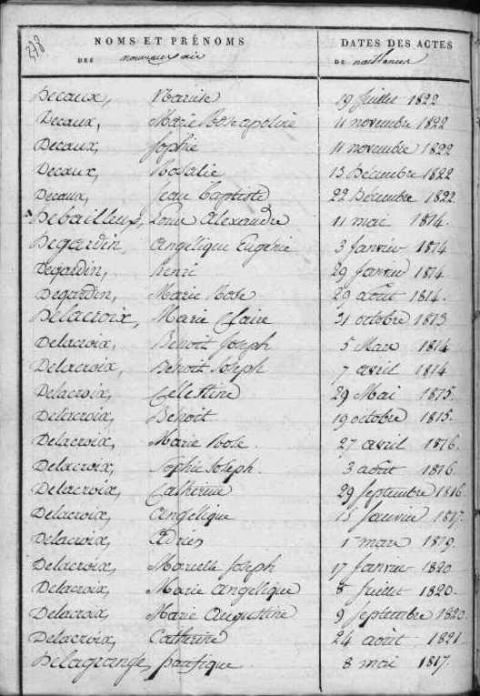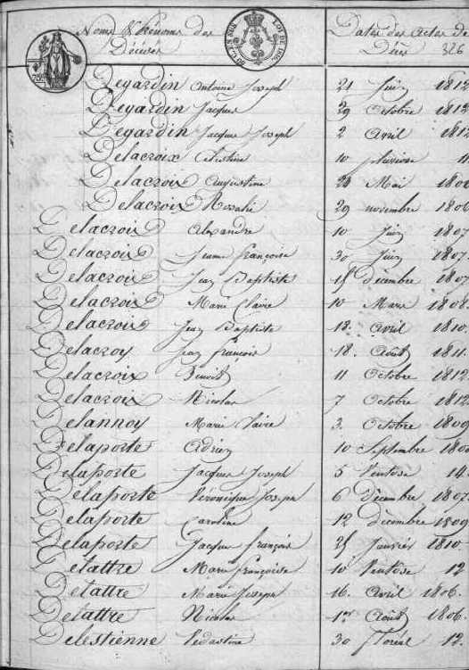 Père : DELACROIX Jean Baptiste ( 1783 - > 1823 )