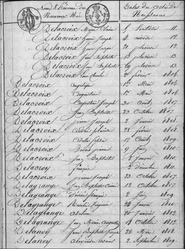 Enfants : DELACROIX Marie Claire ( 1803 - ? )