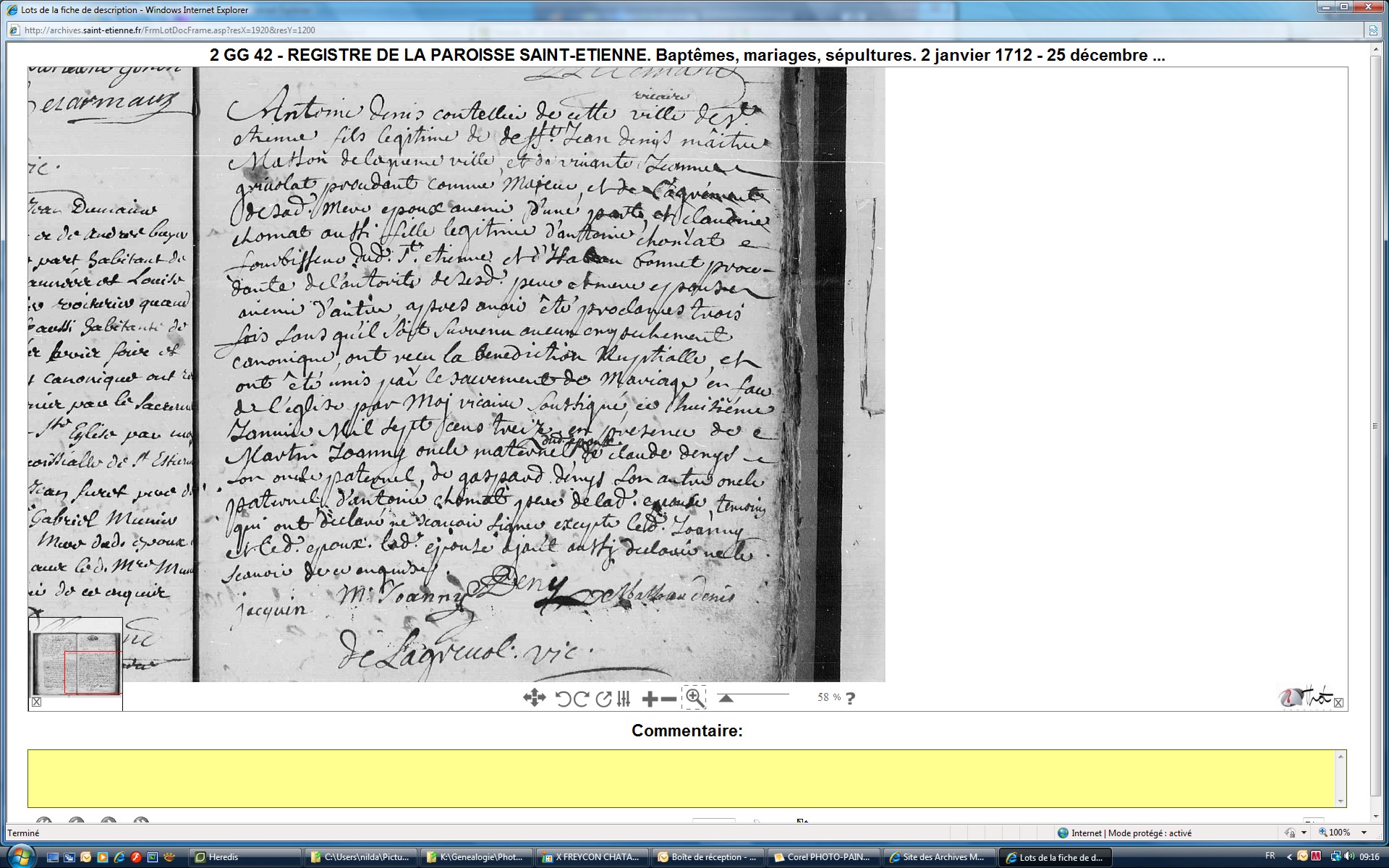 Mariage : 8 janvier 1713 à Saint-Étienne 42100