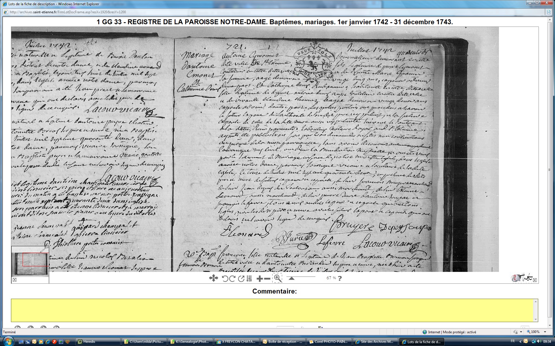 Mariage : 13 juillet 1742 à Saint-Étienne 42100 Notre Dame