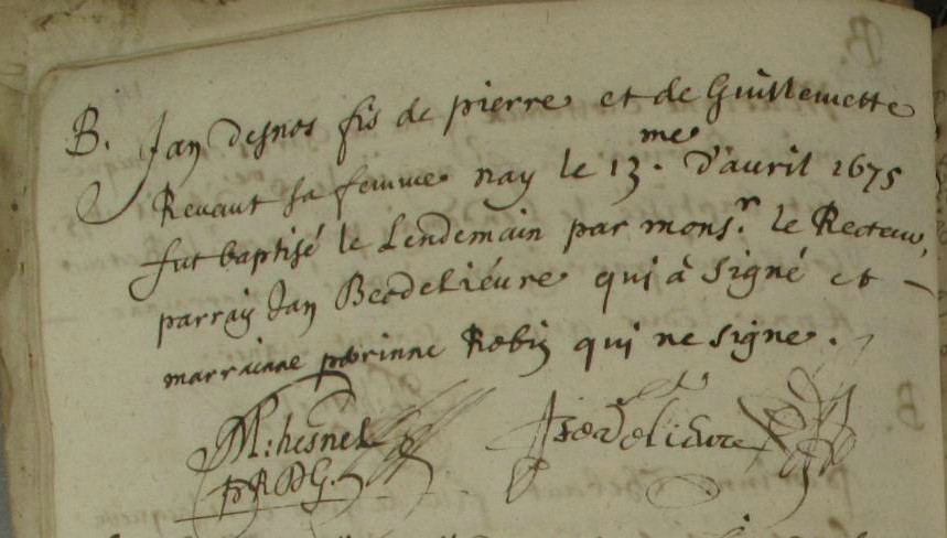 Témoins :DESNOS Jean ( 1650 - 1681 )