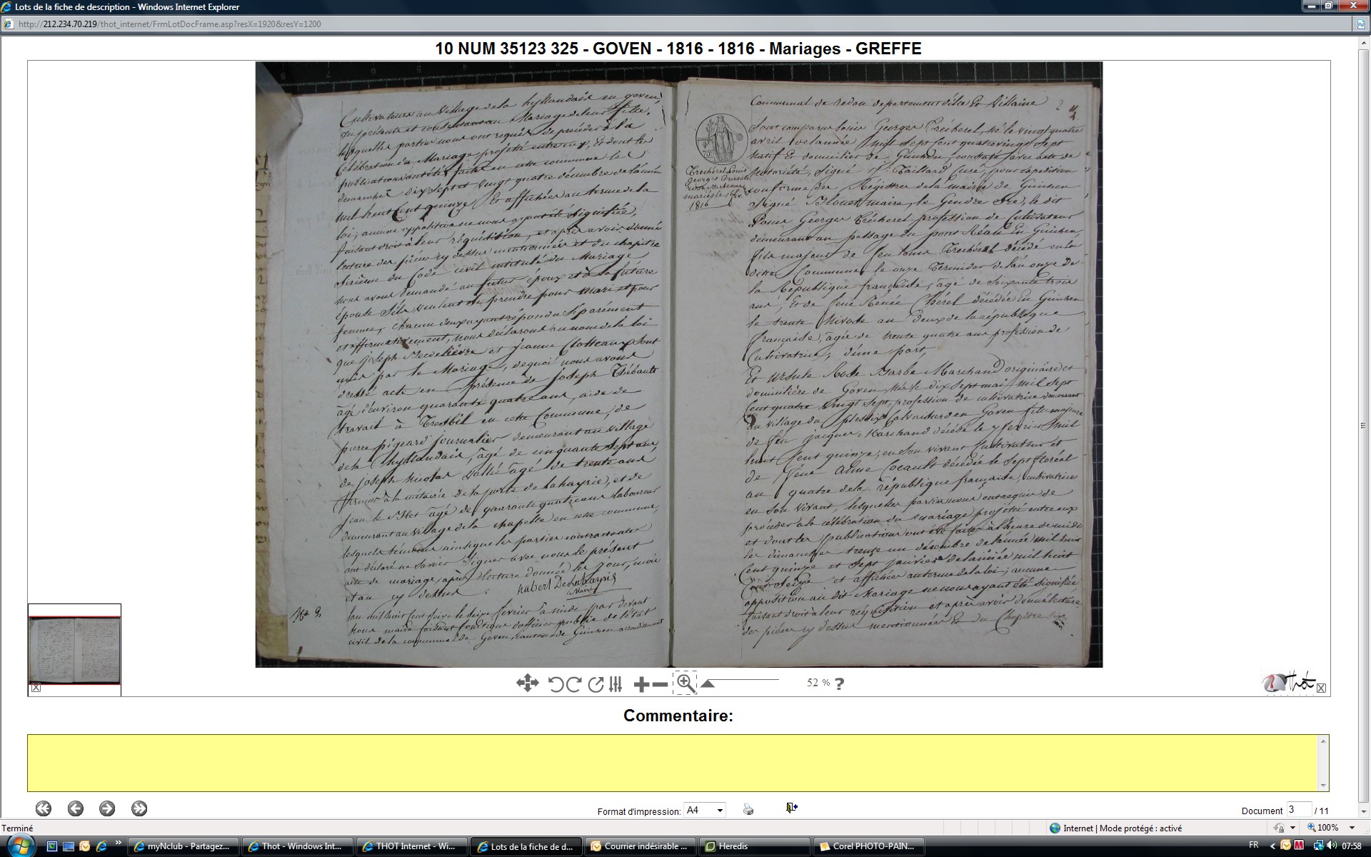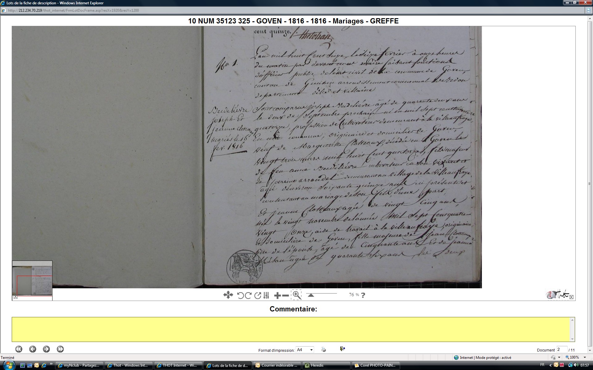 Mariage : 16 février 1816 à Goven 35580