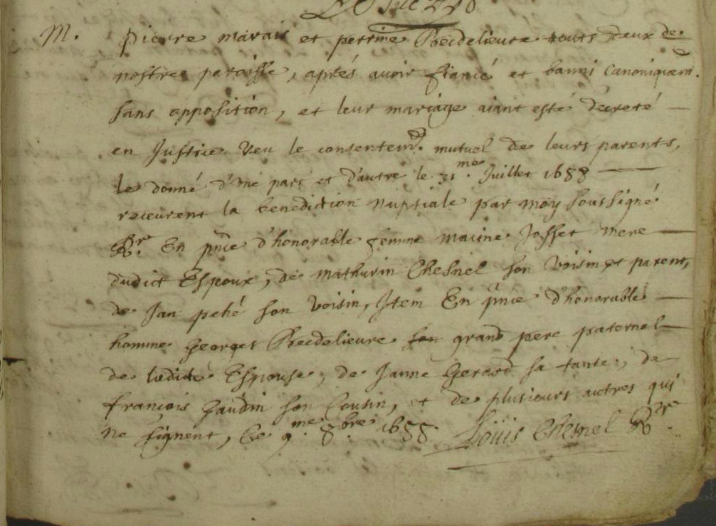 Témoins :CHESNEL Pierre ( < 1621 - > 1677 )