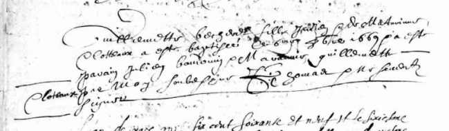Mère : MICHEL Guillemette ( < 1642 - 1676 )