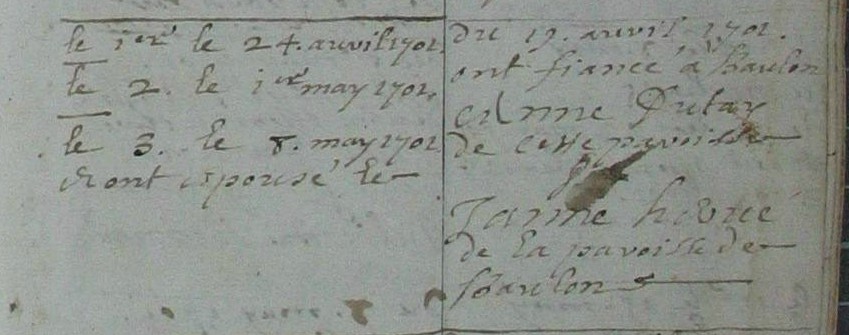 Bans : entre 1er avril 1701 et 8 mai 1701 à Goven 35580