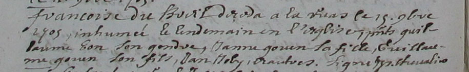 Décès : 15 décembre 1705 à Goven 35580 Ruays