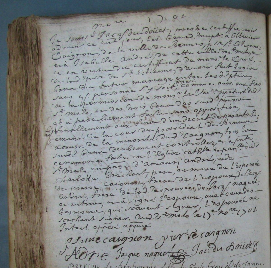 Mariage : 17 novembre 1701 à Saint-Malo 35400